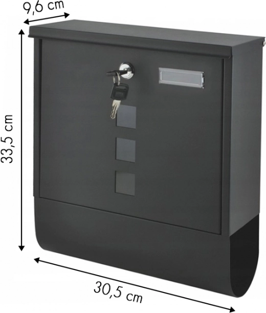 Ez a modern postaláda ideális választás bármilyen kerítéshez vagy ház homlokzatához. Univerzális kialakítása révén tökéletes kiegészítő lakó-, kereskedelmi és irodai épületekhez is. A láda ellenőrző ablakokkal rendelkezik, így könnyen látható, érkezett‑e új küldemény.
