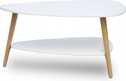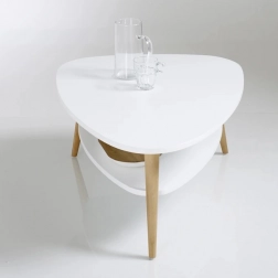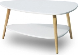 A konferencia asztal fehér asztallappal, fa lábakkal és alsó polccal nagyobb tároló helyet biztosít.