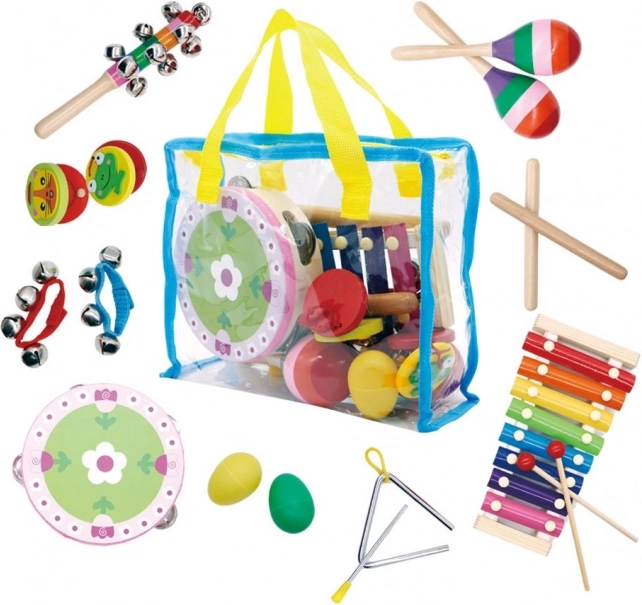 Fedezd fel a zene örömét a 14 darabos, színes készlettel, amely az egész családnak szórakozást nyújt. A gyerekek megismerkednek a ritmussal, hangokkal és dallamokkal, miközben fejlesztik a finom- és nagymozgásokat. A füllel ellátott átlátszó táska gondoskodik róla, hogy minden hangszer mindig együtt legyen, készen az utazásra vagy az óvodába.