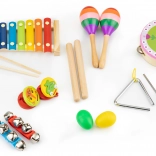 Maracas és kasztanyetta, triangulum, tamburin és cintányér – a változatos készlet ösztönzi a kreativitást és az egész család közös muzsikálását.