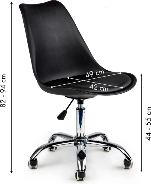 KÉNYELEM A SAJÁT IRODÁDBANAz asztali munka hatékony végzéséhez olyan székre van szükség, amely hosszú időn át kényelmes számítógépes munkát tesz lehetővé. A ModernHome forgószék ideális megoldás irodákba, otthoni munkaállomásokhoz vagy vállalati recepciókra. Fekete szín krómozott kiegészítőkkel tökéletesen illik a modern belső terekhez. |