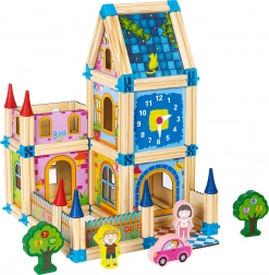 Ez a fa építőkészlet elrepíti gyermekét a korlátlan építés és új struktúrák alkotásának világába. A készlet vonzó színeivel és nagy mennyiségű blokkjával órákig tartó szórakozást biztosít.