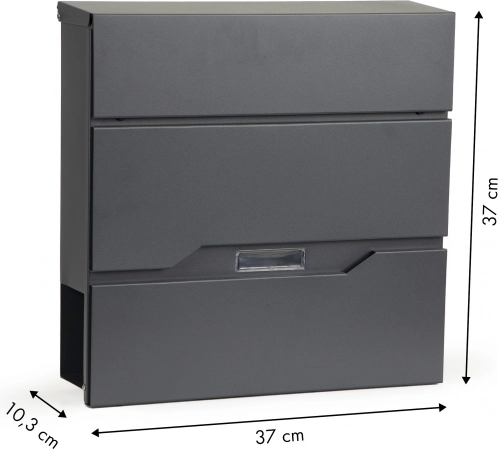 A szekrény modern és elegáns dizájnnal rendelkezik, beépített újságtartóval, amely elválasztja a postát a reklámanyagoktól.