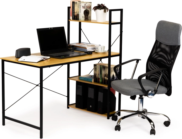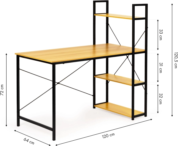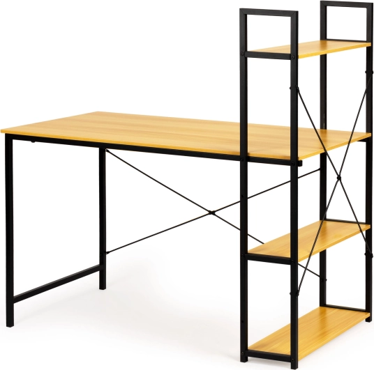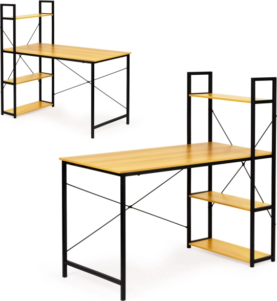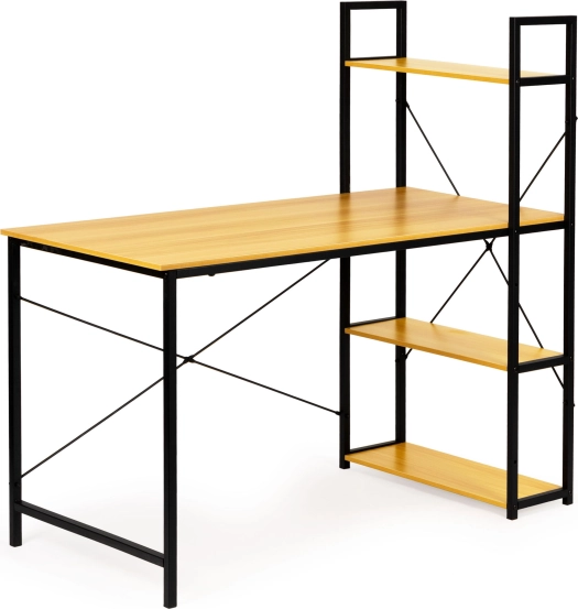 Ha a modern design és a funkcionalitás kombinációját keresi, ez a számítógép-asztal loft polcokkal ideális választás. A természetes fa munkafelületet fekete fém váz támasztja, így stílust és praktikusságot ad otthoni irodájának vagy munkaterének.