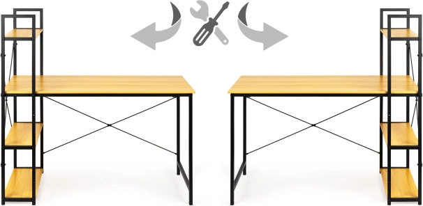 Az asztal tágas munkafelületet kínál, valamint oldalsó állványt négy polccal könyvek, dokumentumok vagy dekorációk tárolásához. A teljes szerkezetet a tartósság és hosszú élettartam jegyében tervezték, olyan anyagok felhasználásával, mint az MDF lap és a porszórt acél.