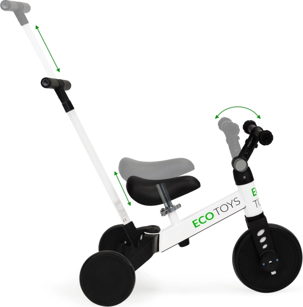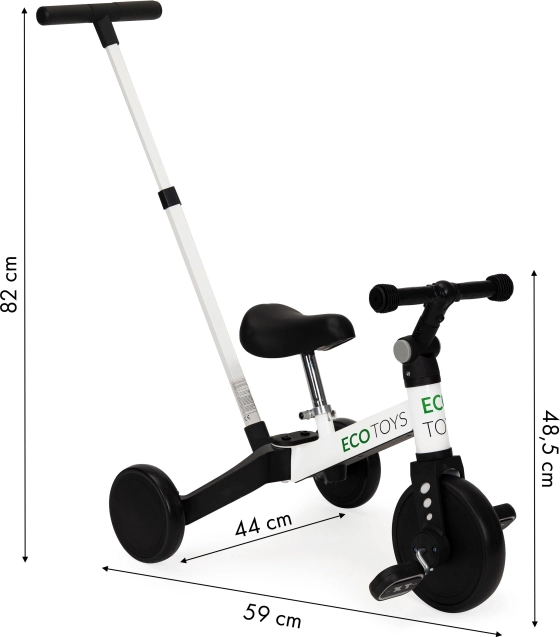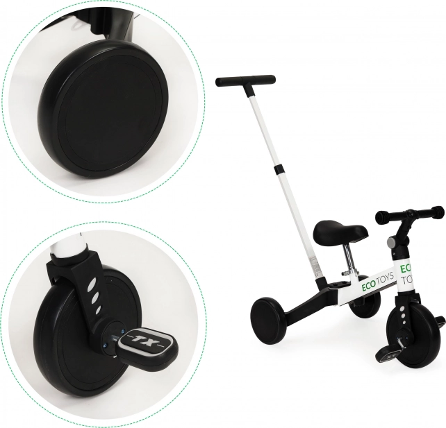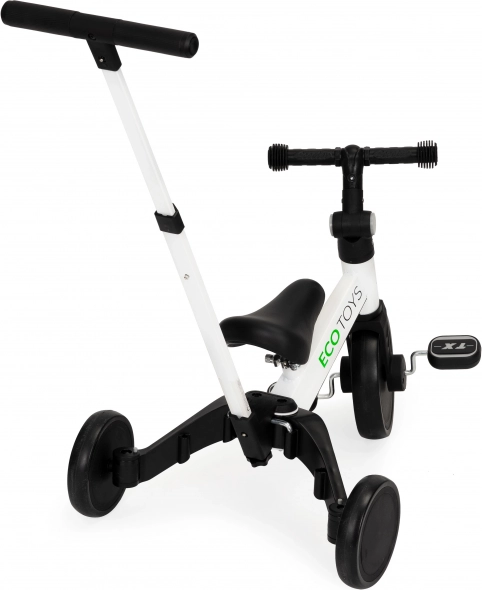 Az ECO TOYS gyermek háromkerekű innovatív megoldást kínál a kis felfedezőknek, akik szeretnének megtanulni kerékpározni. Ez a modell ötvözi az egyensúlyi kerékpárt a hagyományos kerékpárral, amely könnyű átmenetet és növekedést tesz lehetővé a gyermekkel.