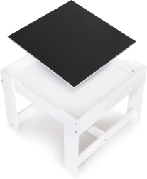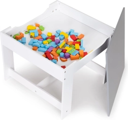 Az asztallap alatt rejtett tárolóhely segít rendet tartani és kialakítani a pakolás szokását játék után. A tároló elfér benne kocka, kisebb játékok és egyéb apróságok, amelyeket érdemes kéznél tartani.