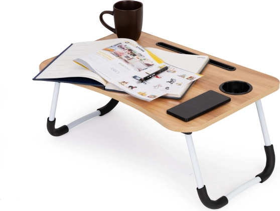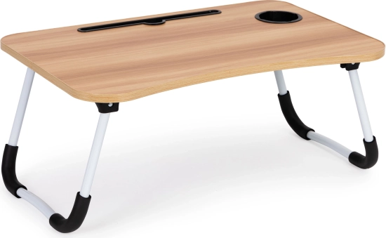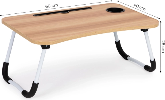 Élvezze a kényelmet munka vagy pihenés közben ezzel a praktikus asztali állvánnyal. Ideális laptop használathoz, könyvolvasáshoz vagy kellemes reggeli rituálékhoz az ágyban. Az asztal préselt lemezből készült laminált felülettel, amely ellenáll a szennyeződéseknek és károsodásnak. Egyetlen mozdulattal összecsukható, ami megkönnyíti a szállítást és tárolást.