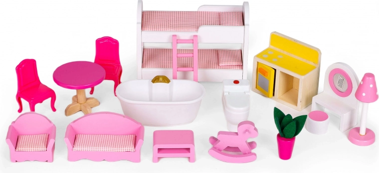 A készlet része továbbá egy 17 darabos fa bútorkészlet, amely szabadon mozgatható és átrendezhető bármilyen megkötés nélkül!