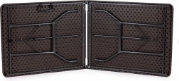Az okos mechanizmusnak köszönhetően pillanatok alatt kompakt bőröndméretre hajthatja az asztalt (90 × 70 × 8,6 cm). Az integrált fogantyú megkönnyíti a hordozást és a tárolást otthon, autóban vagy raktárban.