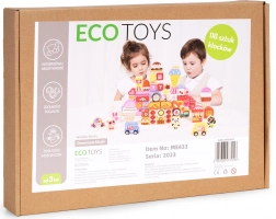 Minden elem minőségi fából készül, nem mérgező, környezetbarát festékekkel van bevonva, és simák, biztonságos élek jellemzik. A csomag része egy praktikus textil zsák is a kockák könnyű tárolásához és szállításához.