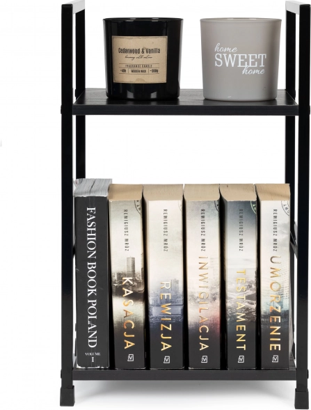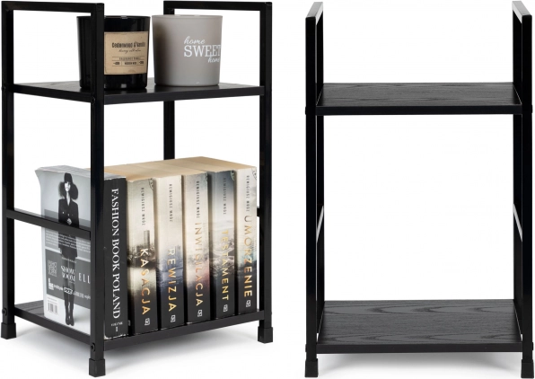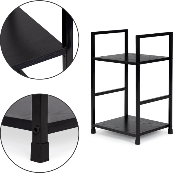 A ModernHome márkájú modern polc két polccal minden típusú belső térhez illik. A nappaliban kiválóan szolgál dekorációk és növények elhelyezésére, a hálószobában éjjeliszekrényként használható. A fürdőszobában pedig helyet biztosít törölközők és kozmetikumok számára.