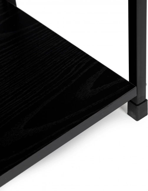 Műszaki részletek: A polc MDF lapból készült, fa utánzatú furnérral, mérete 23,5 x 29 cm. A polc kerete porfestett fémből, a lábak pedig speciális padlóvédő talpakkal rendelkeznek. A polcok közötti távolság 30,5 cm.