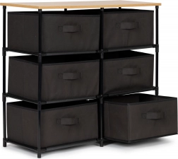 Széles szervezési lehetőségeket kínál a hat kivehető kosárral, amelyek tartós anyagból készültek. A szekrény ideális ruhák, kiegészítők vagy könyvek tárolására.