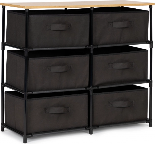Fedezze fel a stílus és a funkcionalitás tökéletes kombinációját a textil tárolószekrényünkkel. Modern dizájnja és erős szerkezete miatt bármelyik enteriőrbe alkalmas. A tetején lévő fa panel stabilizáló elemként szolgál, biztosítva a hosszú élettartamot.