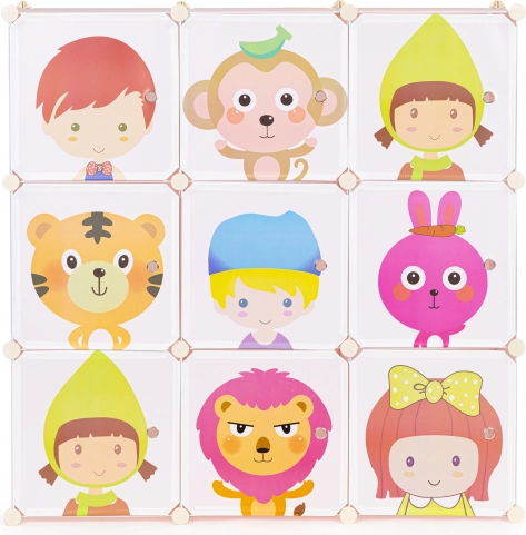 Bemutatjuk a gyerekeknek készült könyvespolcot, ideális a kedvenc játékok, könyvek és apróságok tárolására. Ez a moduláris szekrény 9 polcból (modulból) áll, amelyek szabadon elrendezhetők, így a bútort egyéni igényekhez és preferenciákhoz lehet igazítani.