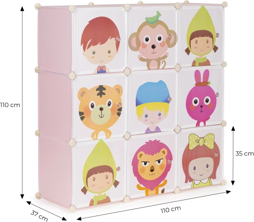 A 9 polc mindegyike akár 3 kg terhet elbír, így könnyedén elférnek rajtuk könyvek, plüssök vagy építőkockák. Az egyszerű hozzáférés a tárolt tárgyakhoz lehetővé teszi, hogy a gyerekek önállóan gondoskodjanak a rendre.