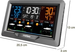 Tartsa kézben az időjárást otthon és a szabadban is. A METEO SP101 állomás áttekinthető piktogramokat jelenít meg, és a Wi‑Fi kapcsolatnak köszönhetően 5 napos online előrejelzést kínál az Ön helyszínére. A külső vezeték nélküli érzékelő kijelzővel a 60 m hatótávon belül méri a hőmérsékletet és a páratartalmat, így nagyobb házakhoz is ideális.