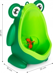 A piszoárt kifejezetten azért tervezték, hogy megkönnyítse és kellemesebbé tegye a WC-használat elsajátításának folyamatát. A színes és funkcionális piszoár ideális megoldás azoknak a gyerekeknek, akik most kezdik kalandjukat a WC-n való önállósággal. A színes béka formájú piszoár felkelti minden fiú figyelmét, így szívesen fogja használni.
