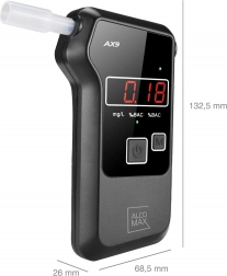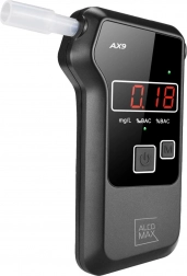 AlcoMax AX9 egy megbízható elektrokémiai alkohol teszter, amely nagy pontosságú mérést kínál, akár 0,001% BAC szintig. Felszerelve az utolsó 20 mérés memóriájával és 5 másodperces indítási sebességgel.