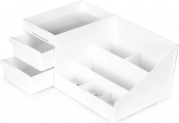A minimalista, fehér kivitel illik a modern és a klasszikus enteriőrökhöz is, és megkönnyíti az gyors eligazodást az eltett tárgyak között. A szervező remekül használható az íróasztalon, a fésülködőasztalon és a fürdőszobában – mindenhol, ahol letisztult rendszert és maximális rendezettséget szeretne.