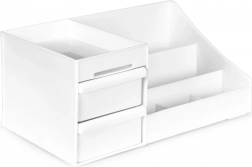 A ModernHome univerzális szervező ideális választás a mindennapi, áttekinthető tároláshoz. Átgondolt kialakításának köszönhetően különböző méretű rekeszeket kínál rúzsoknak, körömlakkoknak, ecseteknek, ékszereknek és irodai apróságoknak. A két praktikus fiók biztonságosan elrejti a kisebb tárgyakat, amelyeket kéznél szeretne tartani, rendetlenség nélkül.