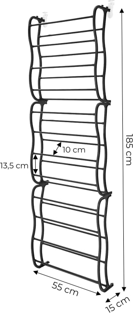 A rendszerező közvetlenül az ajtóra akasztható, így nem foglal helyet a padlón. Ideális kis előszobákba és gardróbokba, ahol minden centiméter számít.