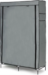 A stabilitást fémcsövek biztosítják, amelyeket polipropilén csatlakozók kapcsolnak össze, a cipzáras, feltekerhető előlapos textilborítás pedig véd a portól és a nedvességtől. A praktikus oldalzseb alkalmas kiegészítők, övek vagy apróságok tárolására. Egyszerű, univerzális kialakítása könnyen illeszkedik bármely enteriőrbe, és remekül szolgál hálószobában, gardróbban, kollégiumi szobában, hétvégi házban vagy albérletben.
