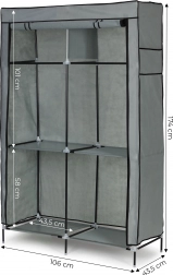 Praktikus megoldást keres a ruhák takarékos és áttekinthető tárolására? A MODERNHOME textil ruhásszekrény elegáns szürke színben a bőséges tárolóhelyet a könnyedséggel és mobilitással ötvözi. A 2 akasztórúdnak és 4 masszív polcnak köszönhetően kényelmesen elhelyezheti az ingeket, ruhákat, kabátokat, összehajtott holmikat és lábbeliket.