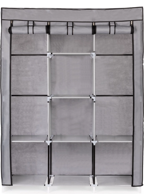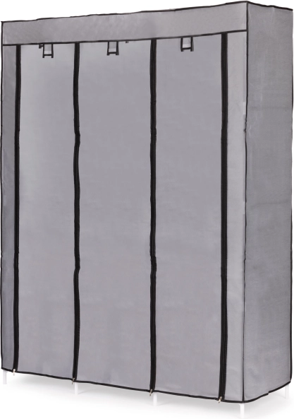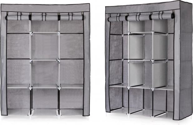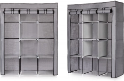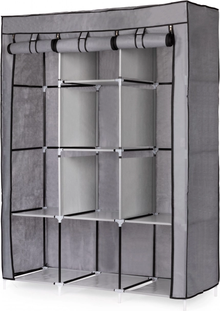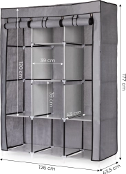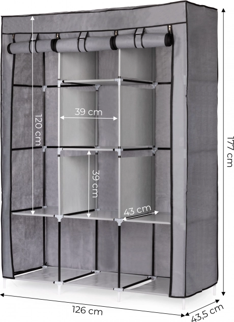 Ez a nagy textil ruhásszekrény remek választás hálószobába, gardróbba és előszobába is. A akasztós részt a blúzok, ruhák és kabátok számára összecsukható polcokkal kombinálja pulóverek, dobozok vagy cipők számára. Egyszerű, univerzális kialakítása könnyen illeszkedik bármely enteriőrbe, és a kisebb helyiségekben is bőséges tárolóhelyet biztosít.
