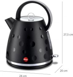 A fekete ELDOM vízforraló a modern dizájnt magas hatékonysággal ötvözi. A 2000 W teljesítménynek köszönhetően pillanatok alatt felmelegíti a vizet, a 1,7 literes űrtartalom pedig ideális az egész család számára. A kezelés intuitív – a fényjelző jelzi a működést, a vízszintjelző pedig megkönnyíti a pontos feltöltést.