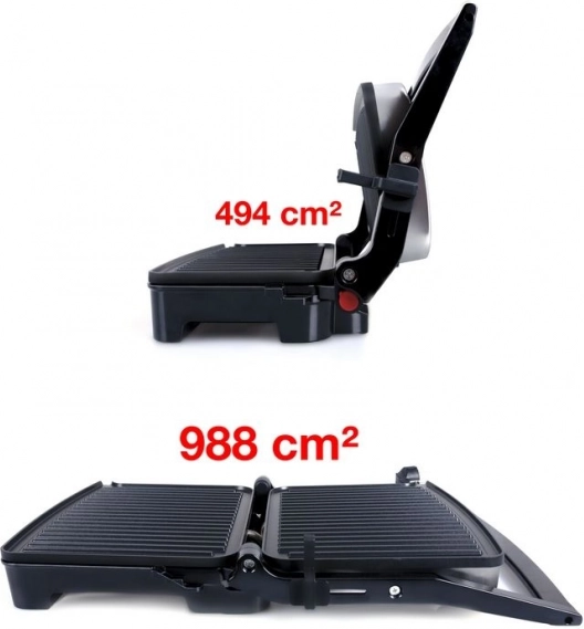 - 2 az 1-ben: kontaktgrill + sík grill (180°-os nyitás)