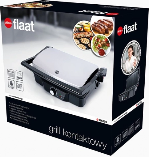 Az ELDOM GK150 Flaat egy stílusos és kompakt grill, amely ötvözi a kontaktgrillt paninihez, steakhez és zöldségekhez a sík grill lehetőségével a 180°-os nyitás után. A tapadásmentes lapok megkönnyítik az odaégés nélküli elkészítést és a gyors tisztítást, míg a hőfokszabályzós termosztát szaftos és tökéletesen átsült eredményt biztosít.