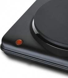 Az elfordítható termosztát lehetővé teszi a fokozatmentes hőmérséklet-beállítást melegítéshez, főzéshez és sütéshez. Az üzemjelző lámpa tájékoztat, amikor a készülék bekapcsolt állapotban van, a csúszásgátló lábak pedig stabilitást biztosítanak a munkalapon. A felület könnyen tisztítható, így a karbantartás gyors és gondtalan.