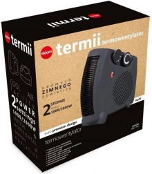 Az Eldom Termii ventilátoros melegítő két teljesítményszinten működik, amelyek meleg és nagyon meleg levegőt biztosítanak. Működését jelzőfény közli, és egyszerűen beállítható hideg és meleg levegő áramlása a kényelmes és jelzett gombok segítségével.