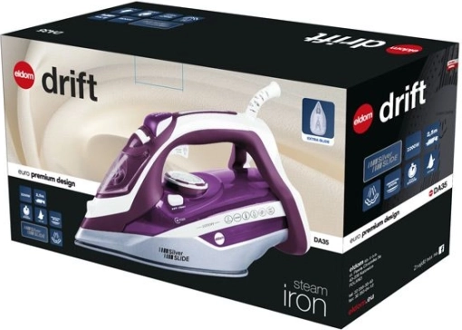 Az Eldom Drift gőzölős vasaló ideális teljesítmény és kényelem kombinációját nyújtja innovatív funkcióinak köszönhetően. Rendelkezik ANTI DRIP rendszerrel, amely megakadályozza a víz csöpögését, ha a hőmérséklet nem elég magas gőz képzéséhez. A kerámia talppal biztosítja a sima csúszást és hatékony vasalást még a legmakacsabb gyűrődések esetén is.