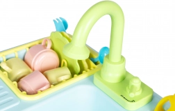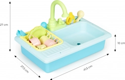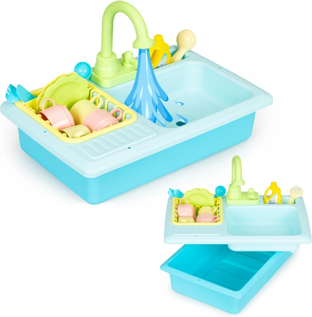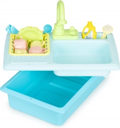 A mosogató dupla aljjal rendelkezik; a víz a mosogató alja és a benne lévő edény között folyik. Tartalmaz egy kis csapot, amely aktiválja a vízfolyást, amit a szivattyú visszajuttat a csap alá. A játékhoz tartozik egy kihúzható szárító is az evőeszközök tárolására, valamint egy speciális hely a mosogatószernek és szivacsnak.