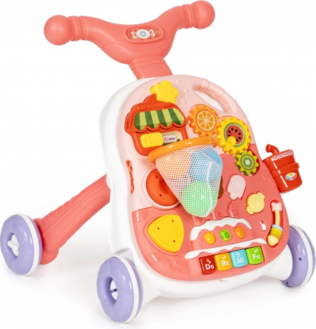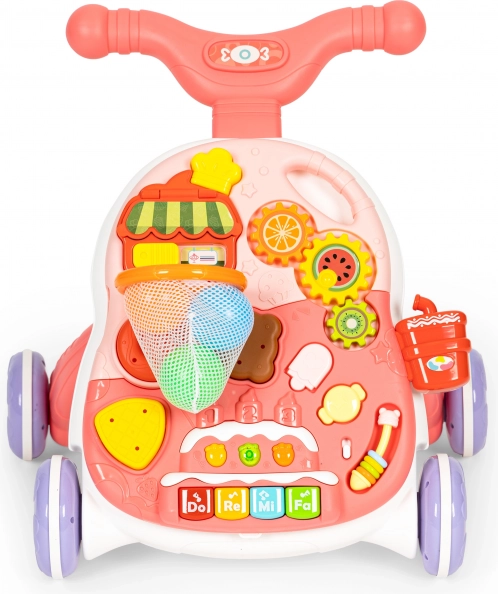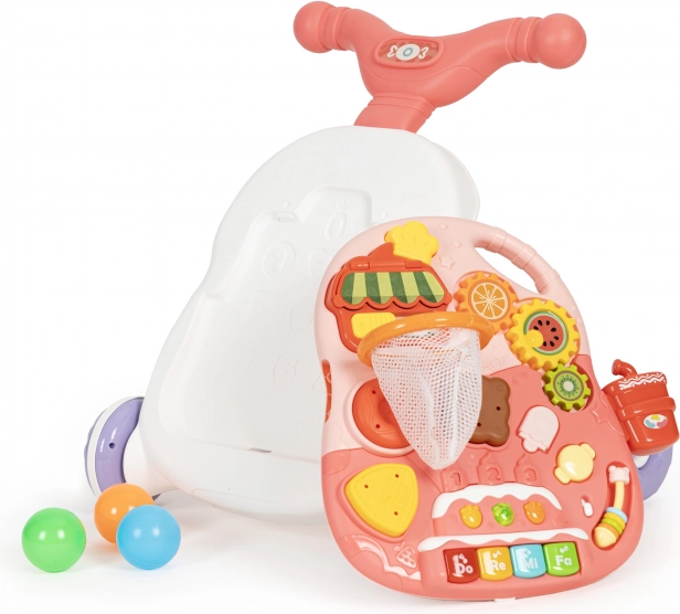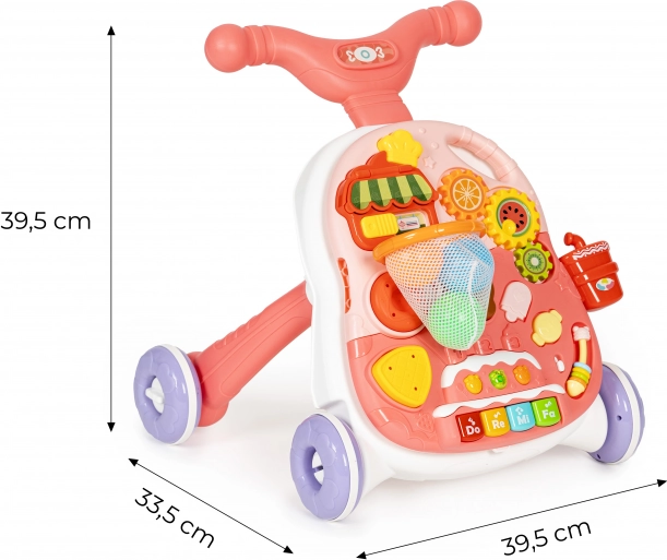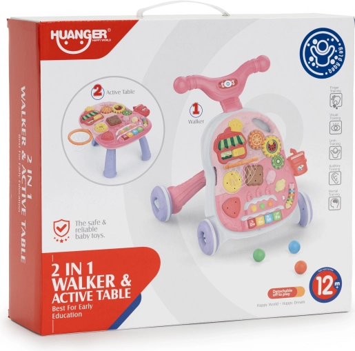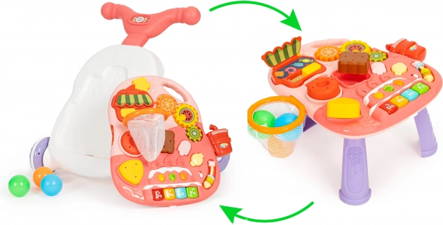 A járássegítőt könnyedén asztalkává alakíthatja az oktató panel vázról történő egyszerű eltávolításával és a lábak felszerelésével. Így a gyermeknek asztalkája lesz, amely játékra ösztönzi, és ezáltal fejleszti kézügyességét.
