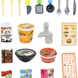 A gazdag 42 darabos tartozékkészlet edényeket, evőeszközöket, gyümölcsöket és zöldségeket, valamint játék élelmiszereket tartalmaz, hogy semmi ne hiányozzon a „menü” elkészítéséhez. Minden tartós, sorjamentes műanyagból készült, 3 éves kortól biztonságos.