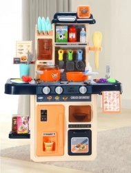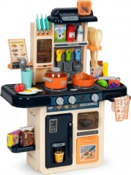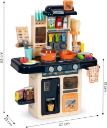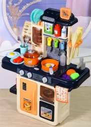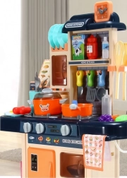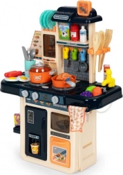 Ez a modern gyerekkonyha mindent kínál, ami a „mintha igaziból” főzéshez kell. A főzőlap bekapcsolásakor forrásban lévő víz hangja hallatszik, és felkapcsolnak a piros LED-ek. Az egyedülálló gőzgenerátor finom gőzt hoz létre – csak töltsön vizet a főzőlapba, fedje le az edénnyel, és kezdődhet a varázslat. A vízadagolós mosogató lehetővé teszi a csap „valódi” megnyitását.