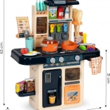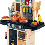 Stílusos gyermek konyha gazdag felszereléssel, amely realisztikus főzési hangokat, égő LED háttérvilágítást és gőzeffektust kínál a még élethűbb játékhoz. 42 kiegészítőt tartalmaz, köztük edényeket, evőeszközöket és élelmiszereket, működő vízadagolós mosogatót és forgatható gombokat. Kiválóan fejleszti a kreativitást és a finommotorikát 3 éves kortól.