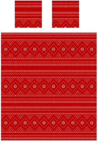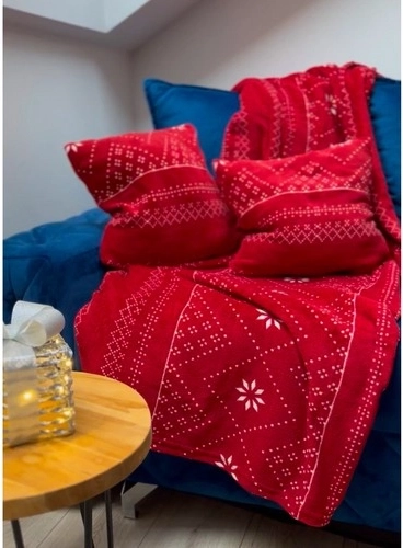 Burkolózzon kényelembe ezzel a piros téli szettel: puha mikropolár takaró és két párnahuzat fehér, skandináv mintával. A finom mikroszálnak köszönhetően a takaró pehelykönnyű, meleg és selymes tapintású, ideális őszi és téli pihenéshez a kanapén vagy a hálószobában. A markáns minta ünnepi hangulatot kölcsönöz az enteriőrnek, és egyben stílusos dekoráció vagy remek ajándék is.