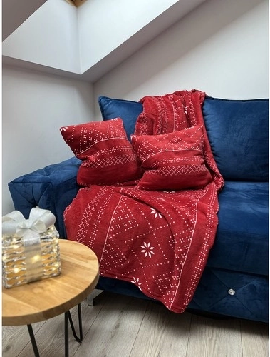 A dekoratív minta jól mutat klasszikus, skandináv és minimalista enteriőrben is. A takaró használható ágy- vagy kanapétakaróként, a huzatok pedig könnyedén feldobják a kanapét és ünnepi hangulatot visznek a helyiségbe.