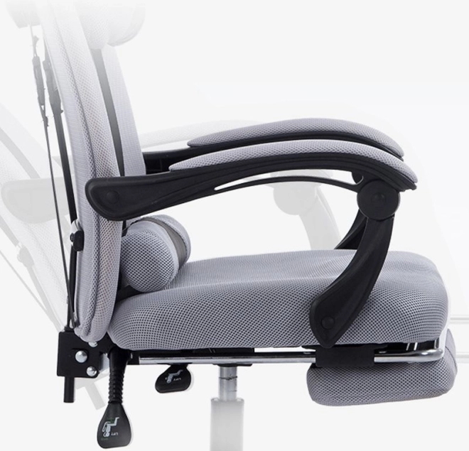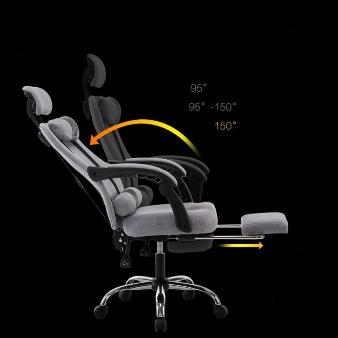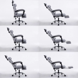 Modern forgó fotel lábtartóval és fejtámlával, ideális irodába, vezetői dolgozószobába vagy diákszobába. Élvezze a kényelmet munka közben a puha és kellemes tapintású anyagnak köszönhetően. Az ergonomikus kialakítás támogatja a hátat, és megkönnyíti a hosszú munkanapokat.