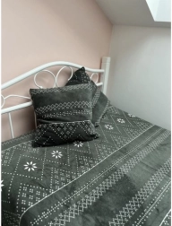 Ez a teljes szett modern szürke színben, fehér geometrikus–téli mintákkal otthonos hangulatot visz az otthonába. A mikroszál kivételes puhaságot, meleget és alacsony tömeget biztosít, így a takaró kellemes társ olvasáshoz, filmhez vagy egy csésze forró italhoz.