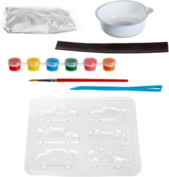Fedezze fel a szórakoztató kreatív készletet gyerekeknek, amellyel saját kisautó alakú mágneseket készíthetnek. A csomag mindent tartalmaz: öntőformát, gipszet, ecsetet és 6 festéket. Az alkotás fejleszti a finommotorikát és a fantáziát, a kész művek feldíszítik a hűtőt vagy a mágneses táblát. Teljes DIY szett, élénk színek és egyszerű folyamat a kezdők sikeréért is.