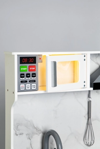Tartalmaz egy világítással és hanghatásokkal ellátott mikrohullámú sütőt és egy páraelszívót, amely a valódi konyhai szellőzőt utánozza.