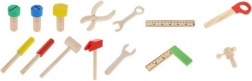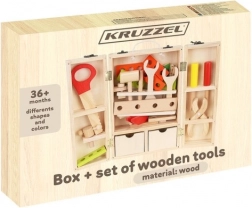 A fa szerszámkészlet bőrönddel ideális játék a kis ezermesterek számára. A bőrönd átlátható rekeszekkel felszerelt az összes eszköz tárolására, és a praktikus fogantyú révén könnyen hordozható.