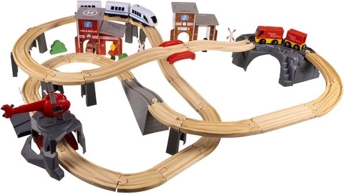 Kruzzel 22754 Elemes fa vonatpálya 70 darab, 480 cm