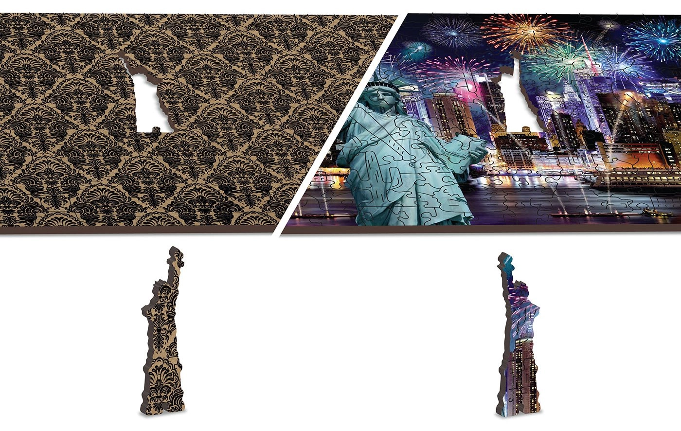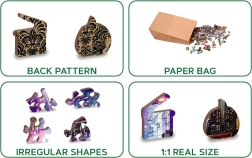Merülj el a szép kihívások világában a mi kétoldalas fa puzzle-nkkel Éjszakai New York 2 az 1-ben. Lézerrel vágott részletek biztosítják a sima éleket szilánkok nélkül és a legmagasabb szintű precizitást: